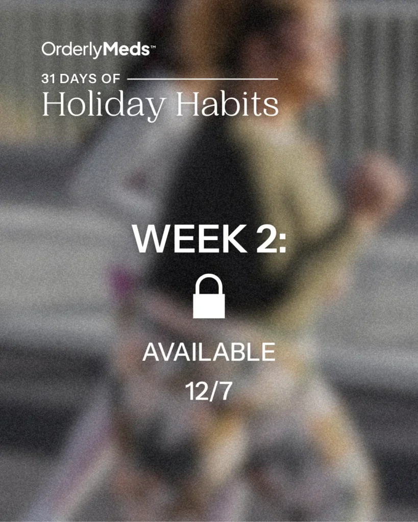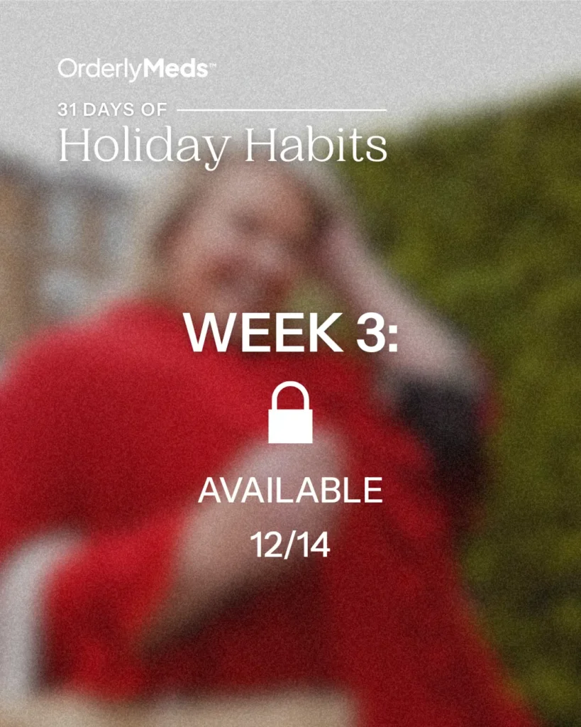 The OrderlyMeds (“Sponsor”) 31 Days of Holiday Habits Community Challenge (“Contest”) is open to legal residents of the fifty (50) United States and the District of Columbia who are 18 years or older and are current or prospective OrderlyMeds customers in the “Your Life Is Calling: A GLP-1 Community” Facebook Group. Void in Puerto Rico, Guam, U.S. Virgin Islands, and where prohibited. Employees, officers, directors, representatives, and agents of OrderlyMeds and their immediate family or household members are not eligible.